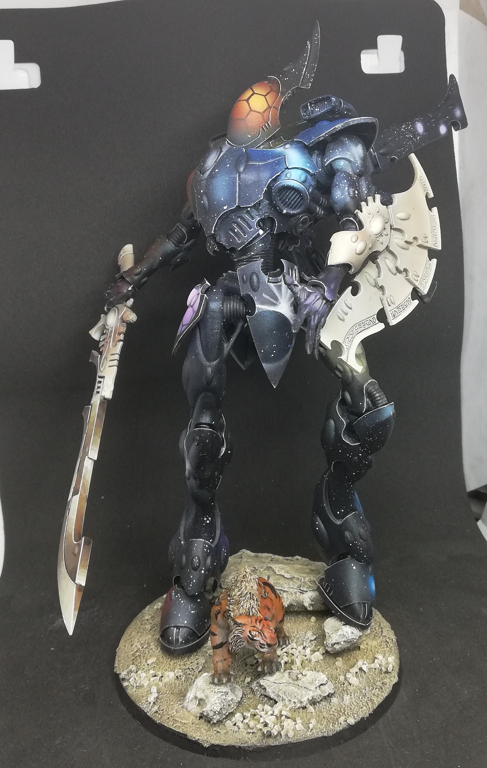 Esta vez voy a compartir un caballero espectral Eldar. Ya sé que en esta edición no se suelen ver por las mesas de juego, pero son miniaturas impresionantes para tenerlas en su caja, así que a por ella.
